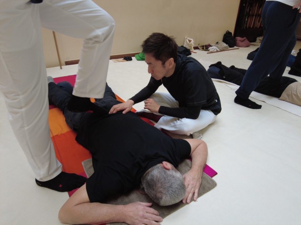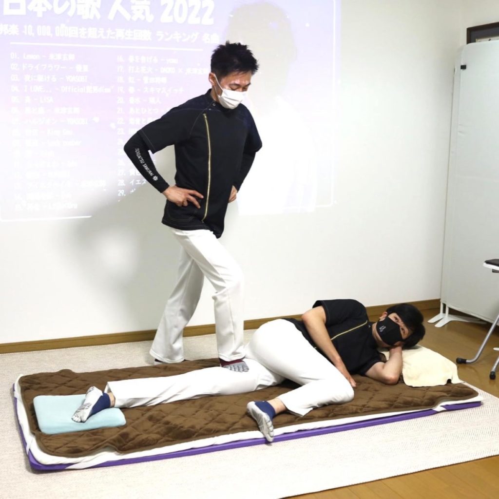 足圧とはあまり馴染みのない言葉ですが、読んで字の如く私の足を使って、相手の全身をほぐしていく療法です。